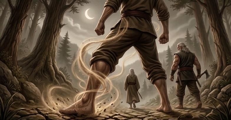 Jurus Nafas Bumi terus ia jalankan bahkan saat berjalan.