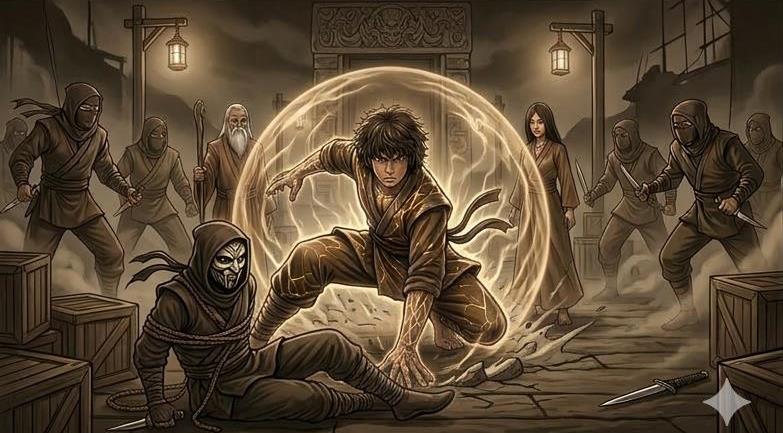 Dengan satu lompatan, dalang itu mencoba menyerang dari atas, memaksa Jaka mundur beberapa langkah. Namun Jaka menahan diri, menyalurkan energi Nafas Bumi ke tangannya, menangkis serangan itu dan memutar tubuh, membalas dengan serangan energi yang membuat gulungan kuno di sekitarnya bergetar.
