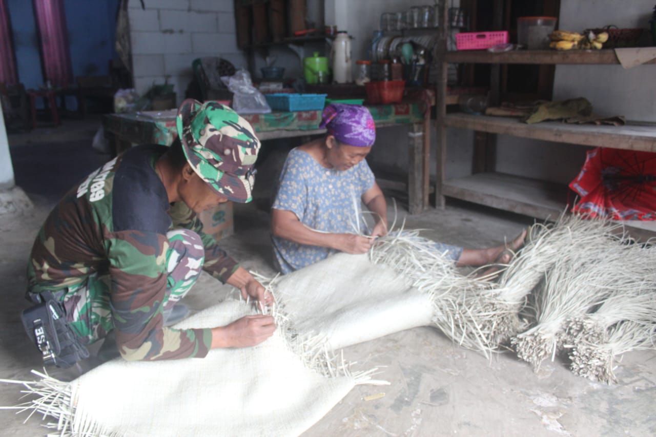 Sertu Agus mendekat. Ia berjongkok, menatap jemari renta yang tetap lincah menari di atas anyaman, dan menyapa hangat. Percakapan mereka sederhana, namun sarat makna: tentang pemasaran, tentang harga bahan baku, dan tentang harapan agar kerajinan tradisional tak lekang oleh zaman.